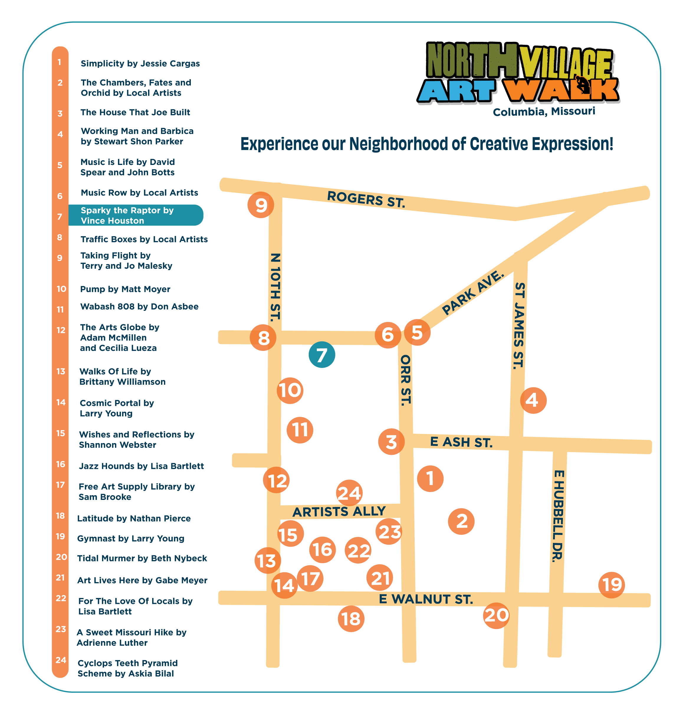 Vince Houston has been creating sculpture from glass and steel for over 40 years. He started doing glassblowing when he was 16 years old. He later attended Columbia College to pursue a degree in Fine Art, and eventually left school to travel with art festivals and outdoor shows demonstrating his glassworks (lampworking). Vince currently focuses on steel sculptures as it gives him the ability to create on a much larger scale.