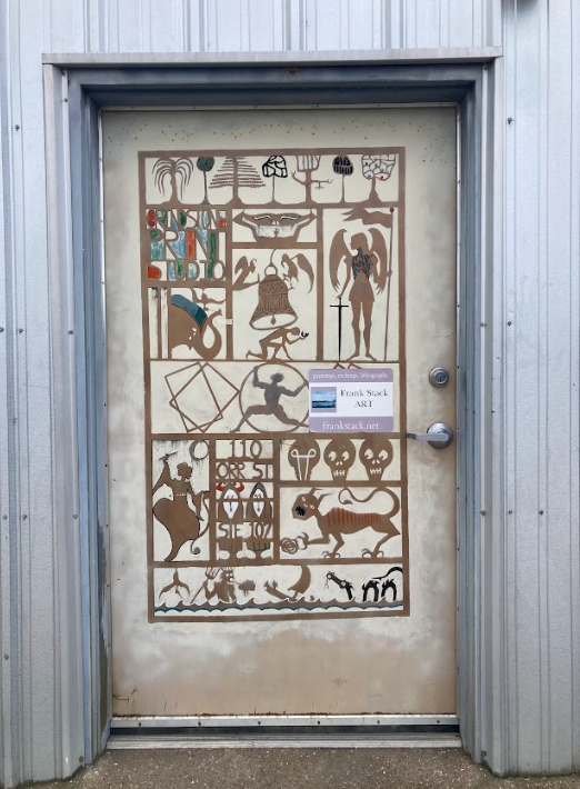 The door sits on East Ash St, on the side of the Balsamo warehouse. The door leads to Frank Stack’s studio, MU Professor Emeritus of Art, who taught for nearly 40 years. Stack is best known as an American underground cartoonist, printmaker, and fine artist, with beautiful landscapes and figure studies.