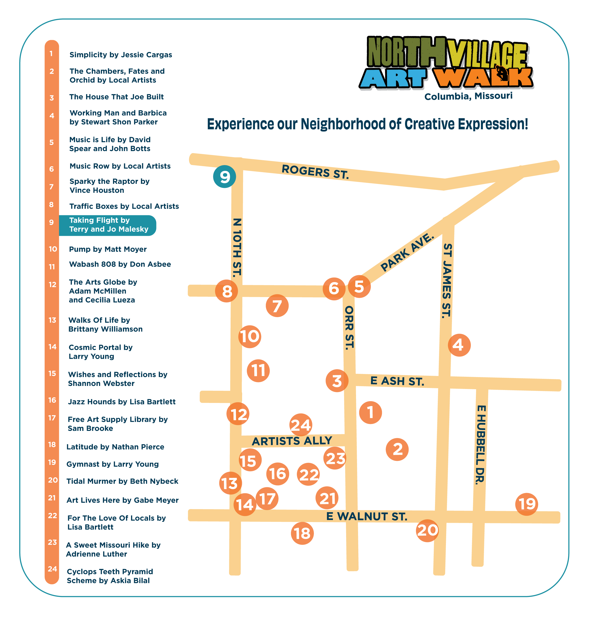 From the founders of New Adventures, and in partnership with Columbia College, this sculpture is of metal birds flying. “Young people are getting ready to take a flight into a different part of their life that they have never been yet. It can be scary, it can be exciting”