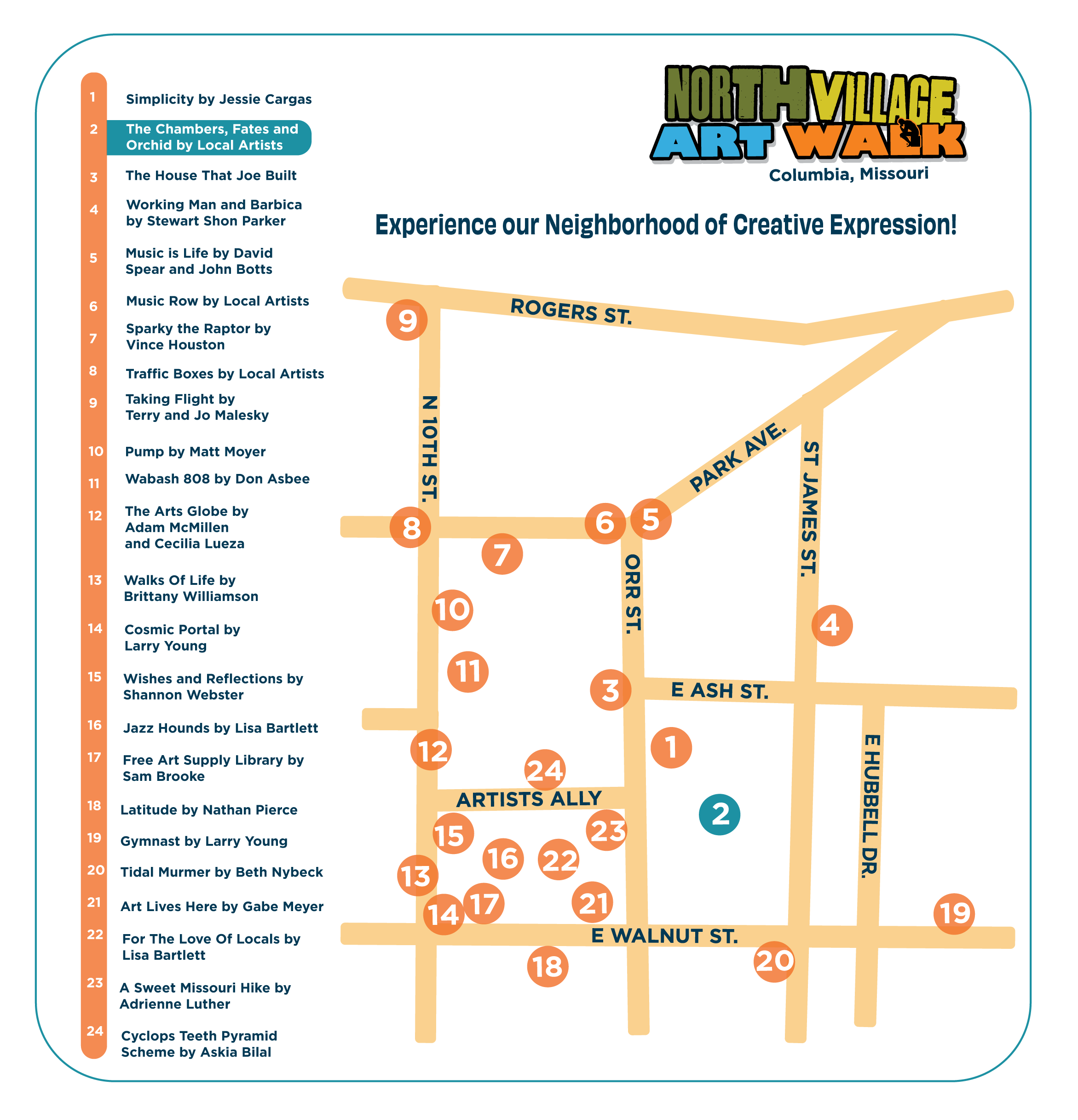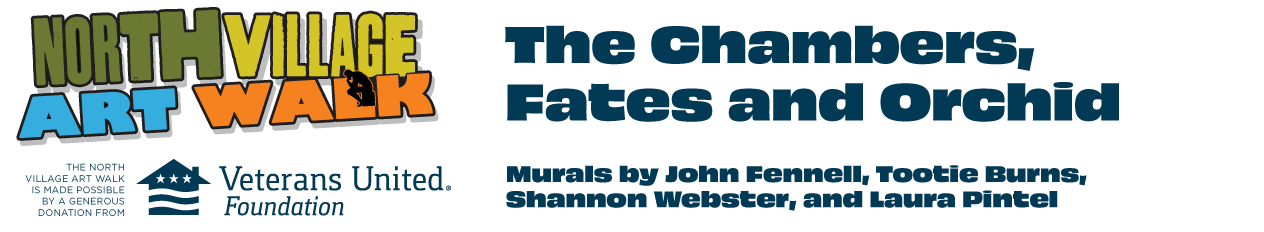 The Chambers, Fates and Orchid Mural can be found on the Orr St. Studios Patio!