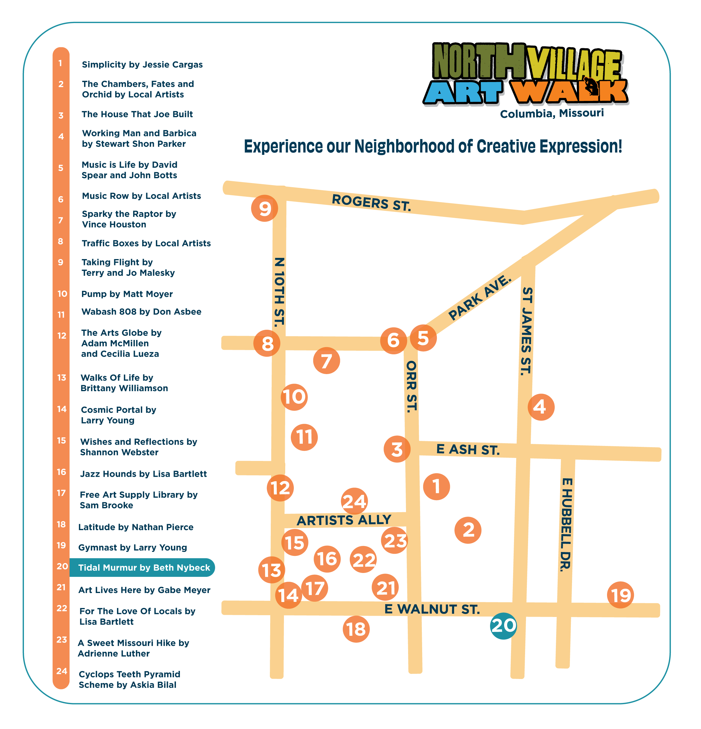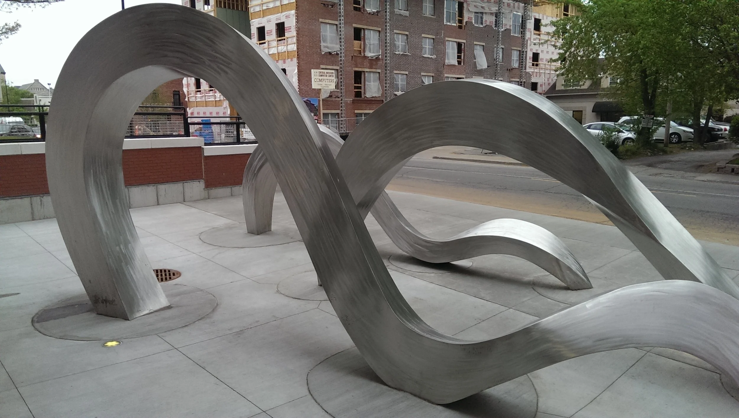 The Tidal Murmur sculpture can be found in front of the Short St. parking garage on E Walnut St